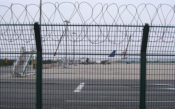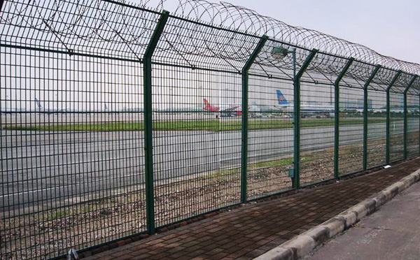 近年來,機場護欄網被廣泛應用在機場,軍事基地等高安全場所。(如果在機場護欄網頂部加裝刀片刺絲、刀片刺繩后又很好的增強了安全防護性能。)
